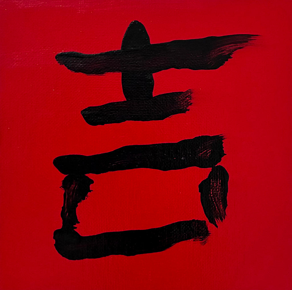 JAPANESE CALLIGRAPHY 6X6 (GOO FORTUNE) ON RED CANVAS BOARD ORIGINAL